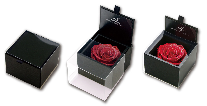 希少な天然ダイヤモンドとラメが薔薇に上品な輝きをプラス。 天然ダイヤモンドが光を四方に分散させながら輝くため、本物の輝きが生まれます |